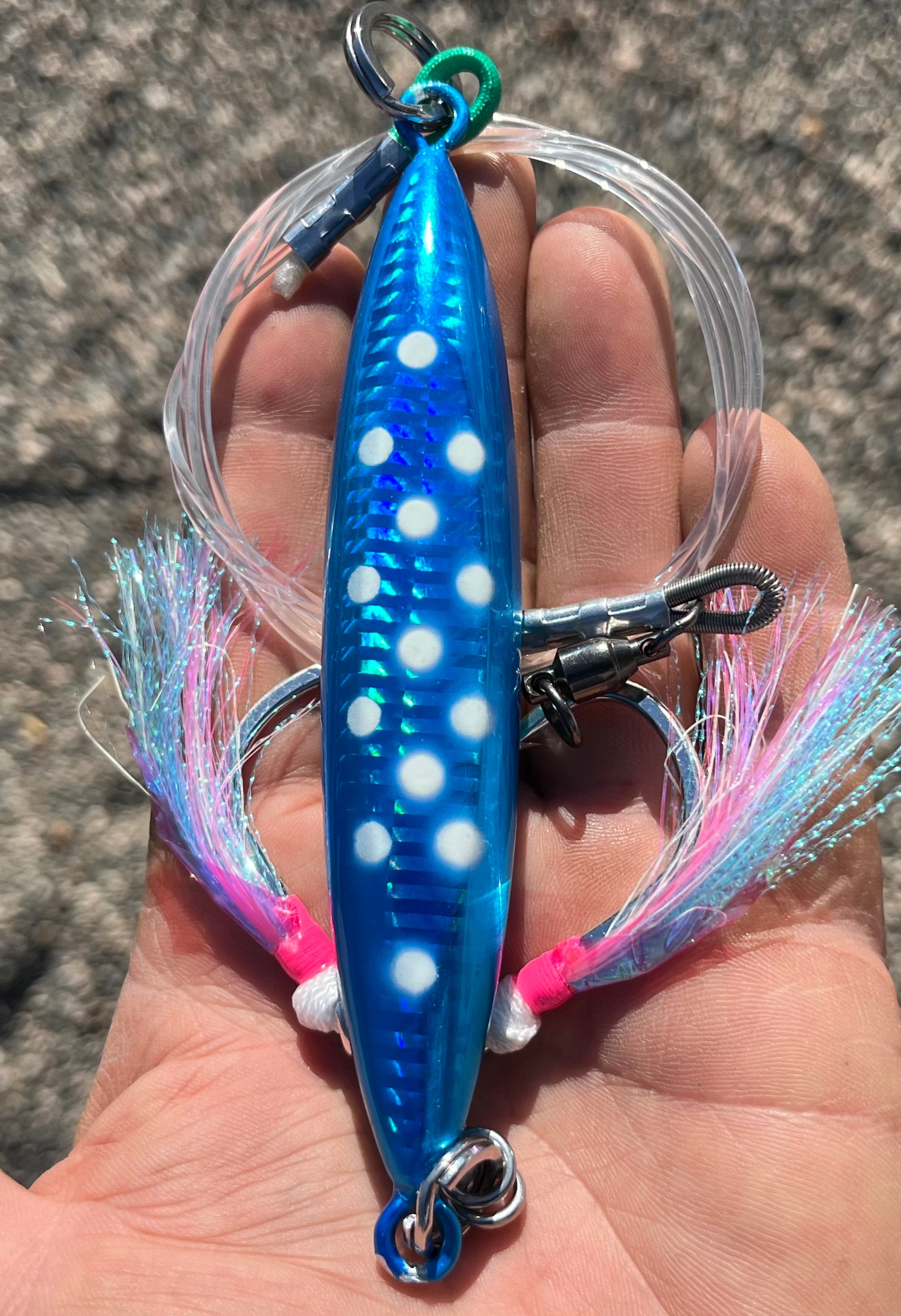 This 300g Cool Blue Jig is a great for calm slow drift nights or when the Bluefin are high in the water column like 80-300ft