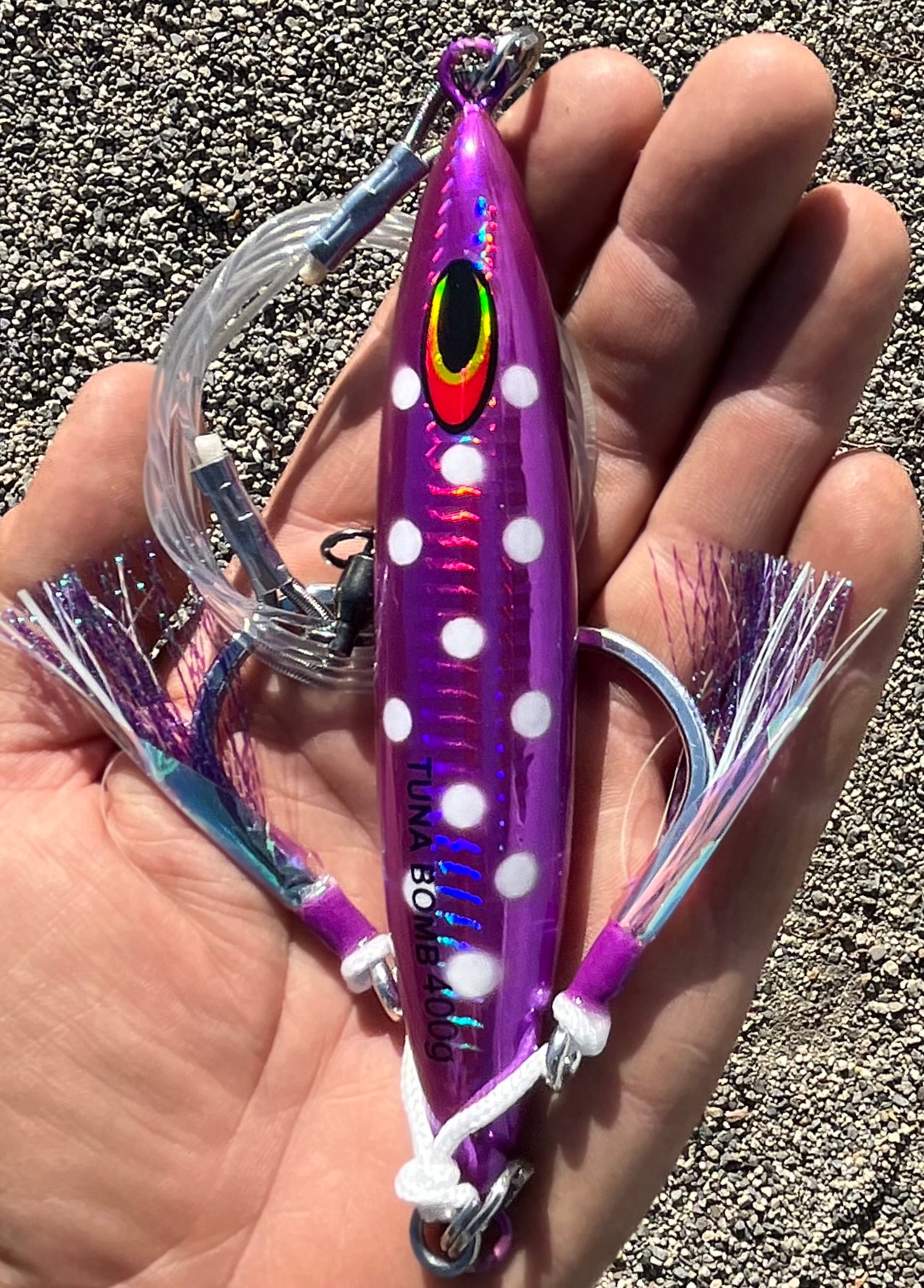 This 400g Jig is a great for getting down to the fish in most conditions. I fish this size and color almost every trip. Although the Treble and Assist hook combination works great some boats ask you to have both hooks on the top or bottom of the jig.